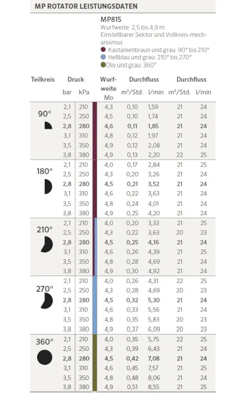 Дюза МР 815 360 - радиус 2.5 - 4.9 м., фикс. сектор (360º), маслинено зелена