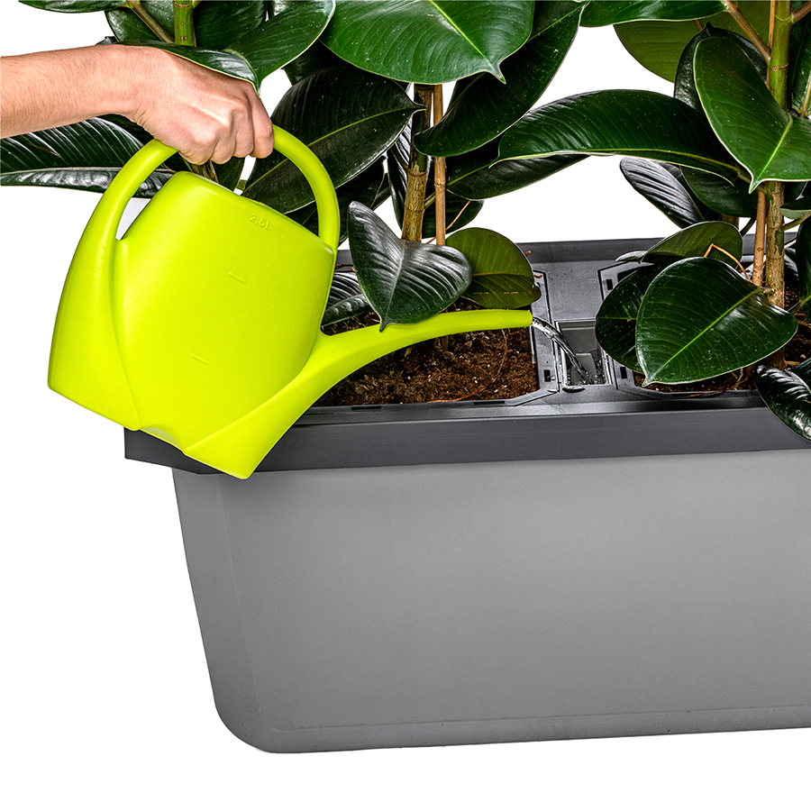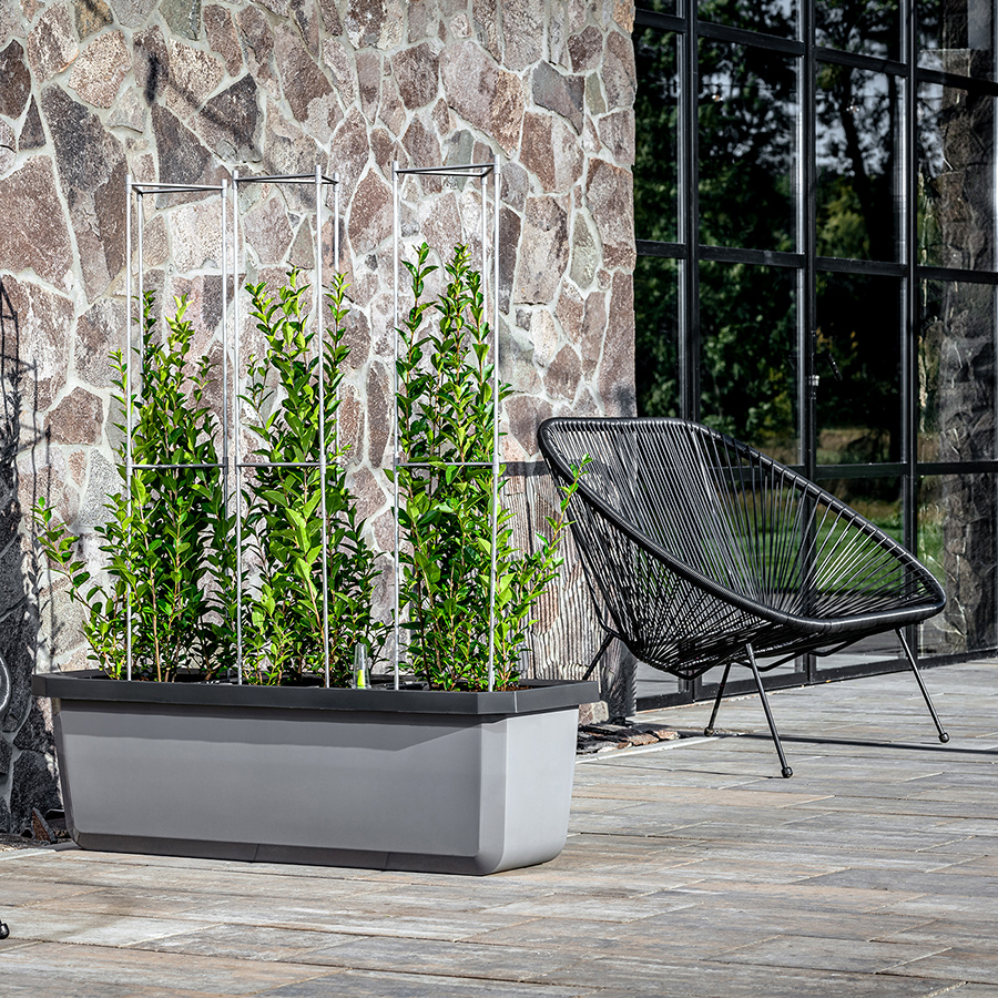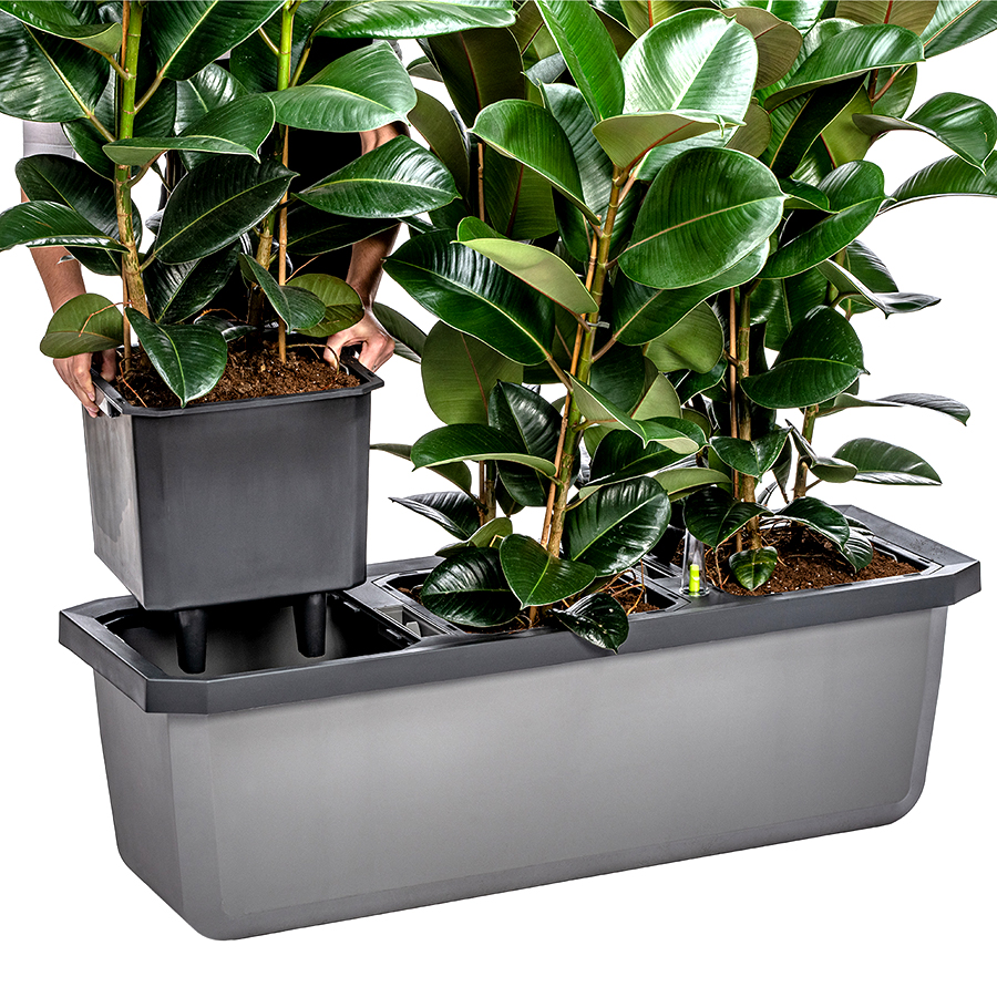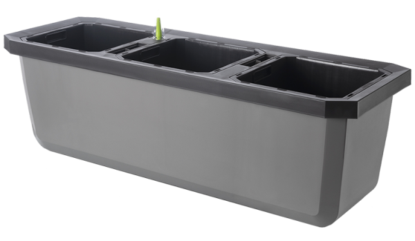 Largo Trio е тройна саксия с голям обем, която е подходяща както за вътрешна, така и за външна употреба. Включва три независими контейнера, така че можете да отглеждате три различни растения едновременно. Отделните контейнери могат лесно да се вадят от саксията. Largo Trio е с напоителна система, отвор за поливане и индикатор за нивото на водата. Ако не желаете да задържате вода в саксията, можете да отворите дренажния отвор на дъното. Oборудванa e с вградени колелца за лесно боравене.