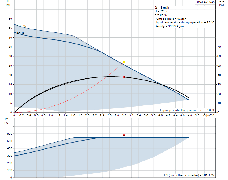 Благодарение на хидравличната си конструкция, мотора с постоянен магнит и водното охлаждане, помпата е изключително безшумна, 47 dB(A) при типични приложения, което я прави подходяща за употреба вътре и вън от къщи. Максималното ниво на шум при пълен товар е 53 dB(A)