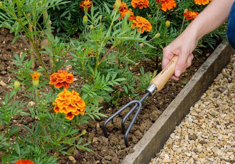 Този удобен инструмент има 3 зъбци, с които култивира и разрохква почвата преди засаждане.