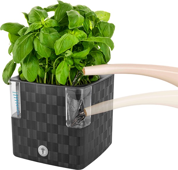 Cobble е снабден с иновативна напоителна система, благодарение на която растенията остават свежи за много по-дълго време и с много по-малко усилия. Благодарение на вградения индикатор, имате постоянен контрол върху количеството вода в резервоара и знаете кога растенията ви се нуждаят от поливане. А през двата отвора на резервоара, той се пълни лесно и бързо. Достатъчно е да го зареждате само веднъж на месец!