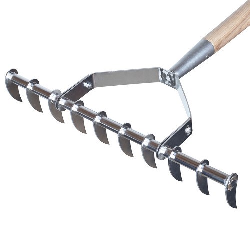 Висококачествен аератор на Kent & Stowe, изработен от неръждаема стомана и красиво дърво от ясен, чудесен за премахване на слама, суха трева и мъх от тревата.