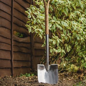 Традиционна, ръчно изработена лопата от неръждаема стомана, подходяща за трудни за работа почви.