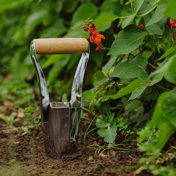 Традиционен инструмент за засаждане на луковици изработен от неръждаема стомана и красива ясенова дръжка.