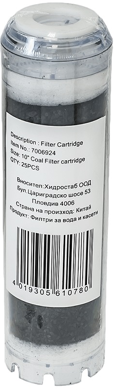 Филтрираща касета с активен въглен за питейна вода.Филтрираща касета Hydro с активен въглен, подходяща за филтър 10''Загуба налягане:25 %
