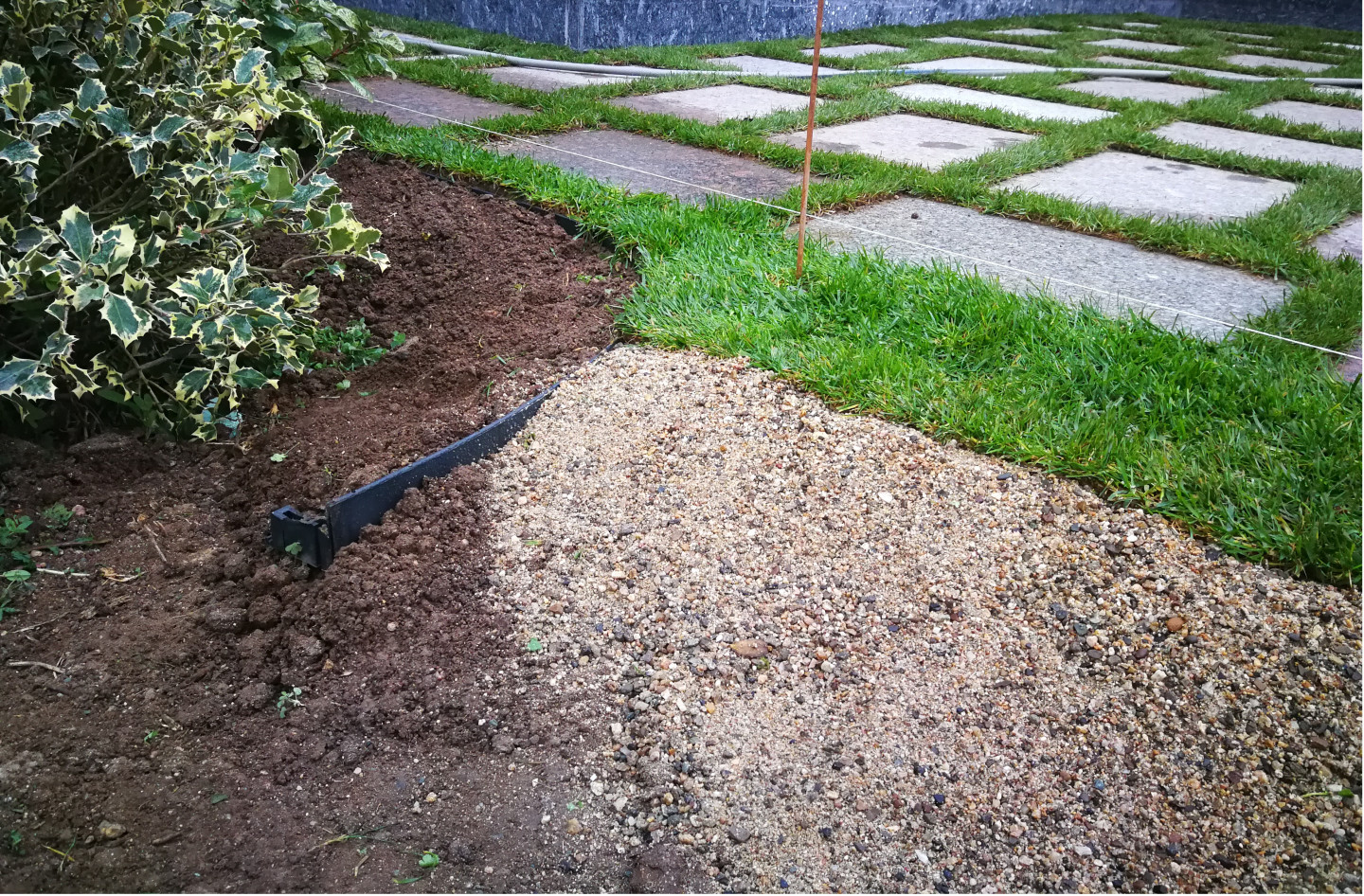 Има възможност за поставяне на агротекстил (зебло против плевели) под ръба на тревата, което да ограничи растежа на плевели.