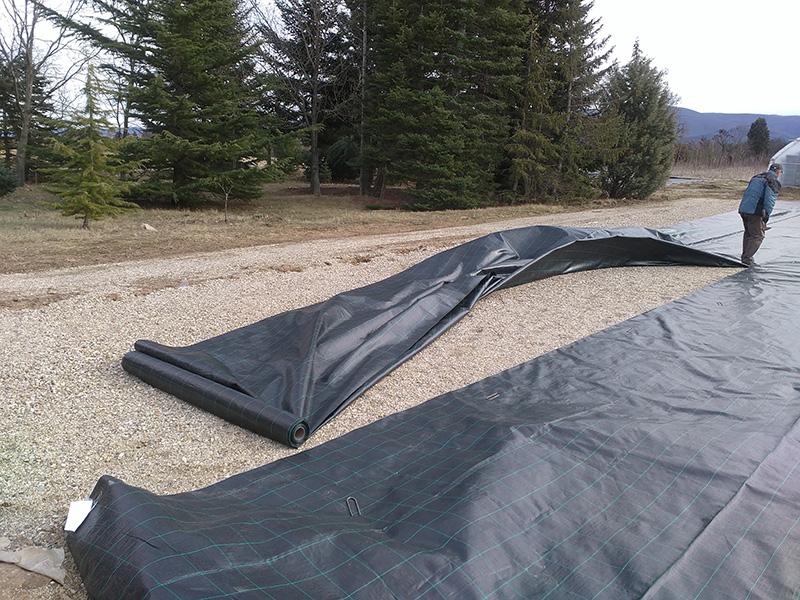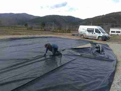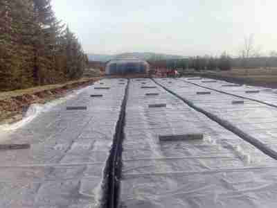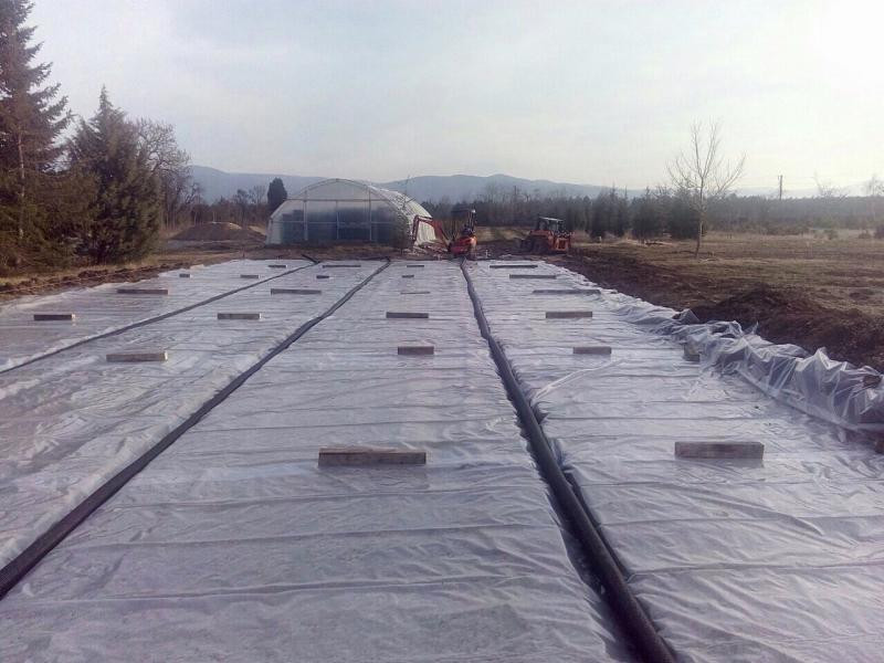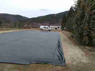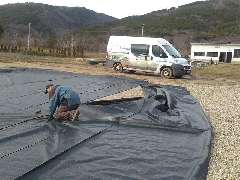 Наскоро започнахме изграждането на поливна дъждовална система за производство на контейнерни фиданки в държавен горски разсадник с. Ветрен. Към момента са изпълнени дейностите по дрениране на терена. Поставена e полипропиленова тъкан срещу плевели "Agritela Nera" на италианската фирма "Arrigoni". Предстоят дейности по изграждането на самата поливна система.