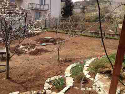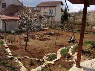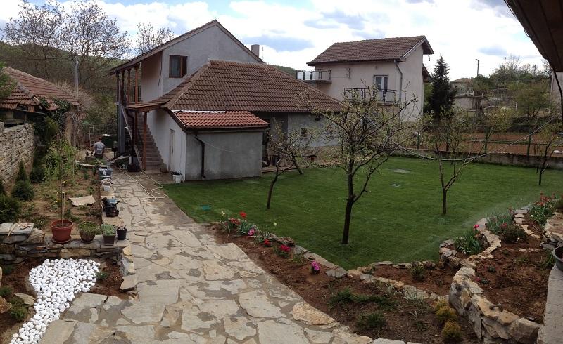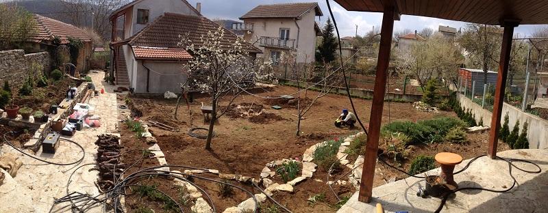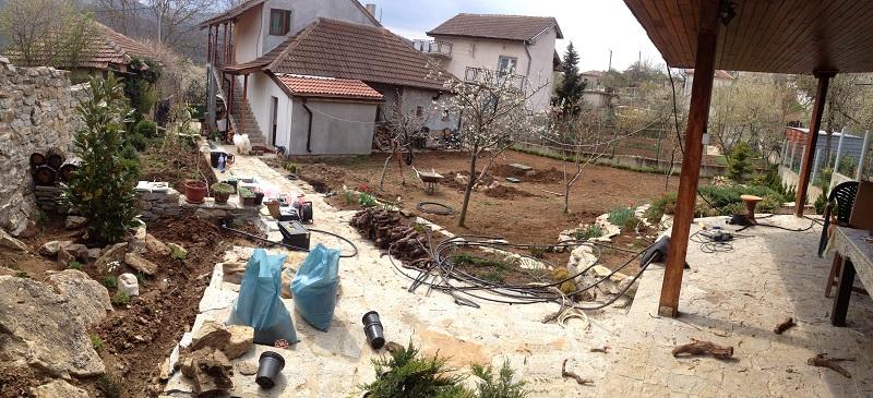 Озеленяването беше реализирано на два етапа. Първият - поставяне на тревен чим, около 160 кв. м. На втория етап засадихме различни видове широколистна и иглолистна растителност като - туя смарагд, лигуструми, спирея, софора, саликс, вечнозелена магнолия, кълбовидни туи, различни видове юниперус и копресокипариси.