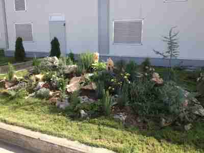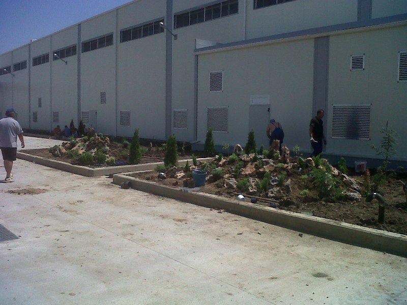 В озеленяването са използвани вечнозелена растителност като смарагдови туи, туя golden globe, хамиципариси, юниперус сабина, както и цъфтящи храсти потентила, спирея, вайгела и др. Също така бяха изградени два алпинеума с разнородна растителност. За затревяването е използвана висококачествена многокомпонентна тревна смеска за обща площ от 1500 м2.