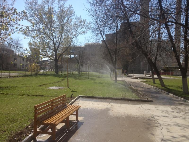 Общата паркова площ за напояване е 6500 кв.м. Техниката използвана за напояване на този обект е на американската компания Hunter Industries. За управление на напоителната система се използват най-новите и от най-висок клас програматори I-Core на американския производител Hunter Industries.
