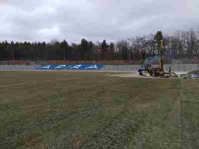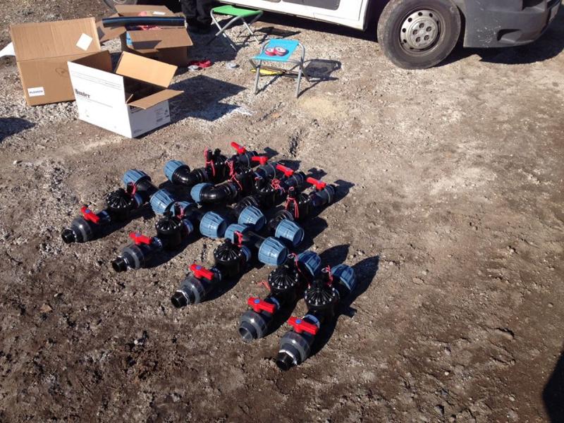 Радваме се, че завършихме един голям и важен за нас проект, а именно изграждане на поливна система на стадион „Дружба” в град Кърджали. Смело можем да заявим, че ние сме една от малкото фирми в България, които могат да се похвалят с такъв успешно реализиран проект. Поливането е решено в две направления. Едното са разпръсквачите от висок клас I40 на американската фирма "HUNTER INDUSTRIES", а другото са роторните разпръсквачи за големи площи от най - висок клас I90 отново на американската фирма "HUNTER INDUSTRIES". Управлението на поливната система ще се извършва от програматор тип модулен за външен монтаж, модел "I - CORE" отново на американската фирма "HUNTER INDUSTRIES". Ще се монтира и датчик за соларен синхронизатор модел " SOLAR SYNC" на HUNTER INDUSTRIES", неговата основна функция е да следи за външните условия, като спрямо тях автоматично да променя дневните настройки на поливките, също така спира поливането при наличие на дъжд. Филтрацията е решена от филтърна станция, изградена от дисков филтър на 3'' модел "TYPHOON", произведен от "PALAPLAST" с работно налягане 10 bar и 120 микрона пропускливост, както и дисков филтър на 2'' модел "HELIX PROFESIONAL", произведен от "CEPEX", с работно налягане 10 bar и 130 микрона пропускливост. Клапаните са модел "PGV" 2'' женска резба с реглаж на дебита отново от американските ни приятели от "HUNTER INDUSTRIES". Ще се монтира и помпена станция, като ще използваме помпа GRUNDFOS модел CR 32-5, с дебит 28 m3/h, с напор h 80 m. и с мощност от 11 kW.